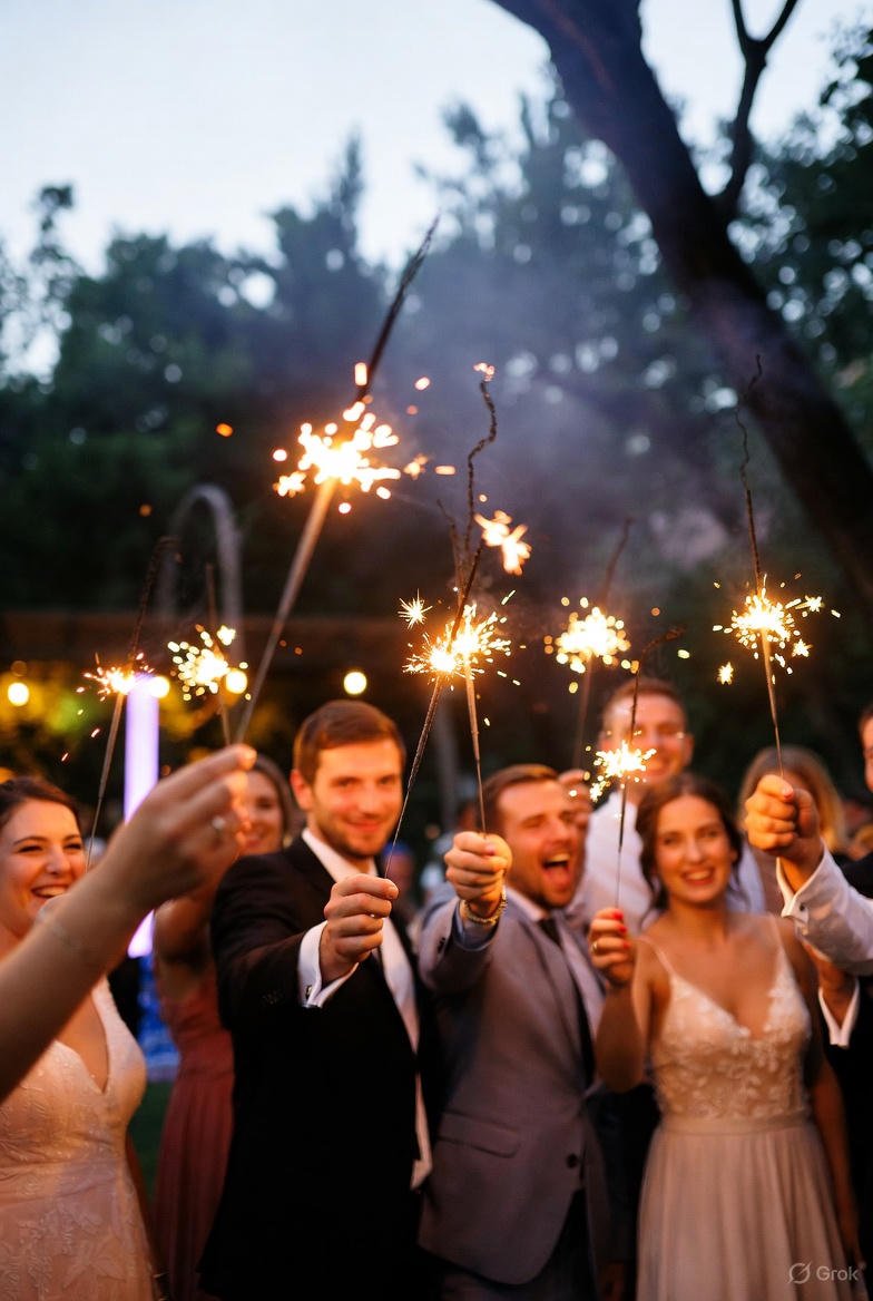 Pro Tip: Ask guests to hold sparklers slightly above head height and angle them outward. This keeps the walkway clear and enhances the “sparkler tunnel” effect.